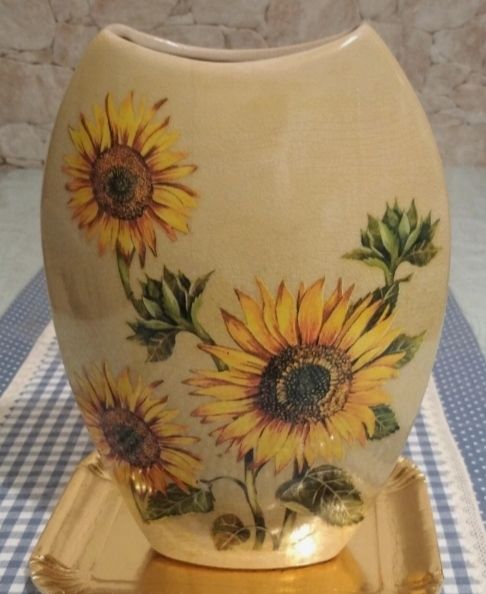 Vaso porta fiori: 📌altezza 27,5/28cm 📌 larghezza bocca 5,5×11 cm Un po' scolorito il colore dello sfondo