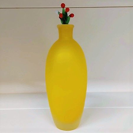 Vaso in vetro giallo con fiori in vetro colorati Altezza cm 23