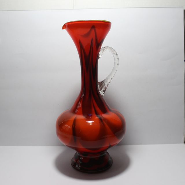 Vaso in vetro opalino anni '70 colore rosso e nero
