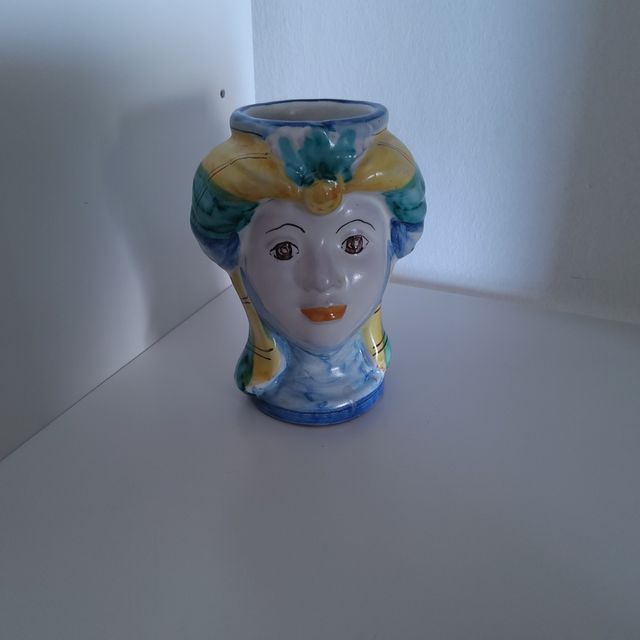 Dettagli del prodottoBellissimo vaso in maiolica di Caltagirone, dipinto a mano. Perfetto come elemento decorativo o piccolo vaso. Dipinto dal maestro RICCARDO VARSALLONA