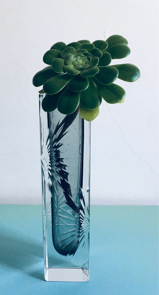 Dettagli del prodottosplendido vaso 1970 cristallo effetto fume’ consistente pieno del peso di quasi 2 k fondo grosso forma parallelepipedo esterna e arrotondato dove accoglie i fiori belle stelle incise a decorare i lati qualche imperfezione scheggiature ma che non nettono in pericolo lintegrita’ del vaso pagato 150 euro lo inserisco a basso prezzo proprio causa difetti Misure del prodotto