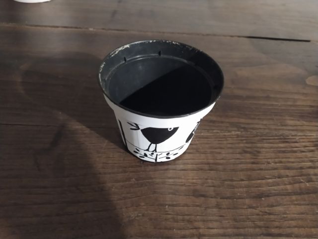 Vaso di plastica dipinto a mano. diametro 10 cm altezza 9 cm