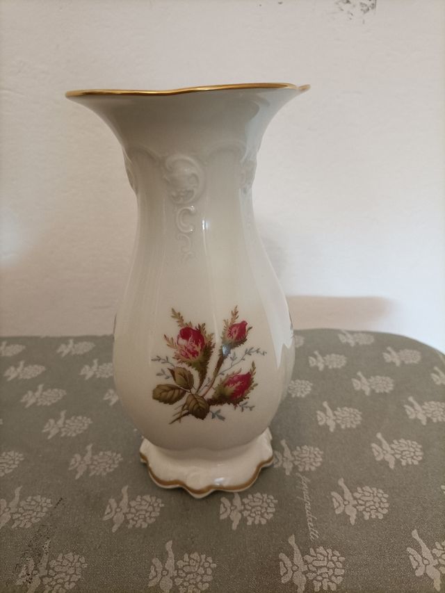 Dettagli del prodottoBellissimo vaso della collezione Rosenthal Classic Rose. È in porcellana, di colore avorio, con decorazioni floreali. Perfetto per aggiungere un tocco di classe alla tua casa! - Porcellana di alta qualità - Decorazioni floreali. Forma a campana. Piccolissima sbeccatura come da foto 3 sulla base. H cm 17,5 Diam cm 9