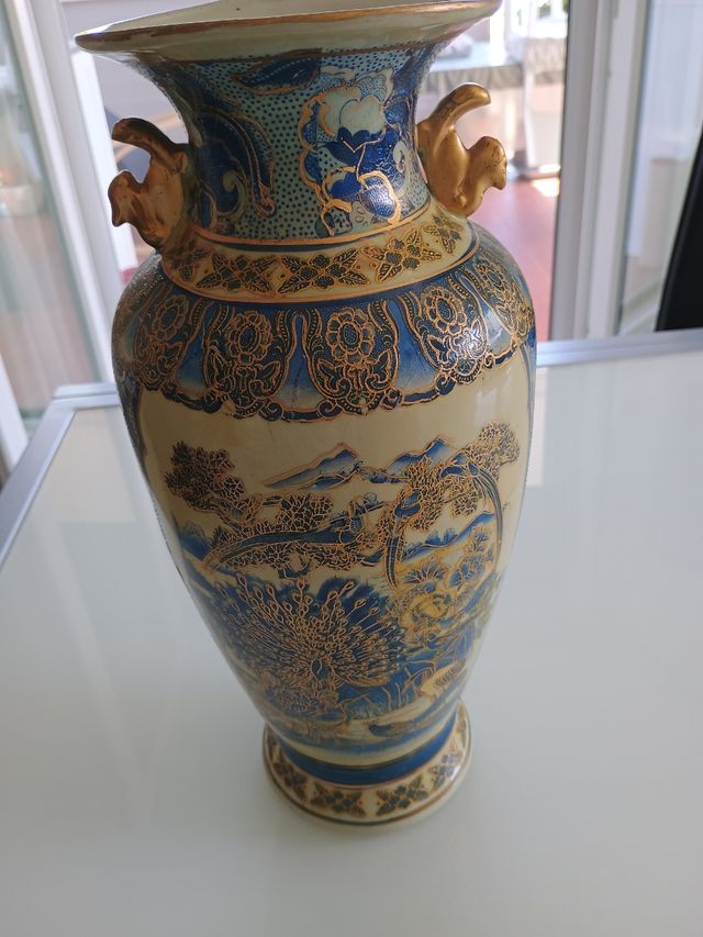 Dettagli del prodottoBellissimo vaso in stile Satsuma, decorato con dettagli in blu e oro. Un pezzo unico per la tua collezione!