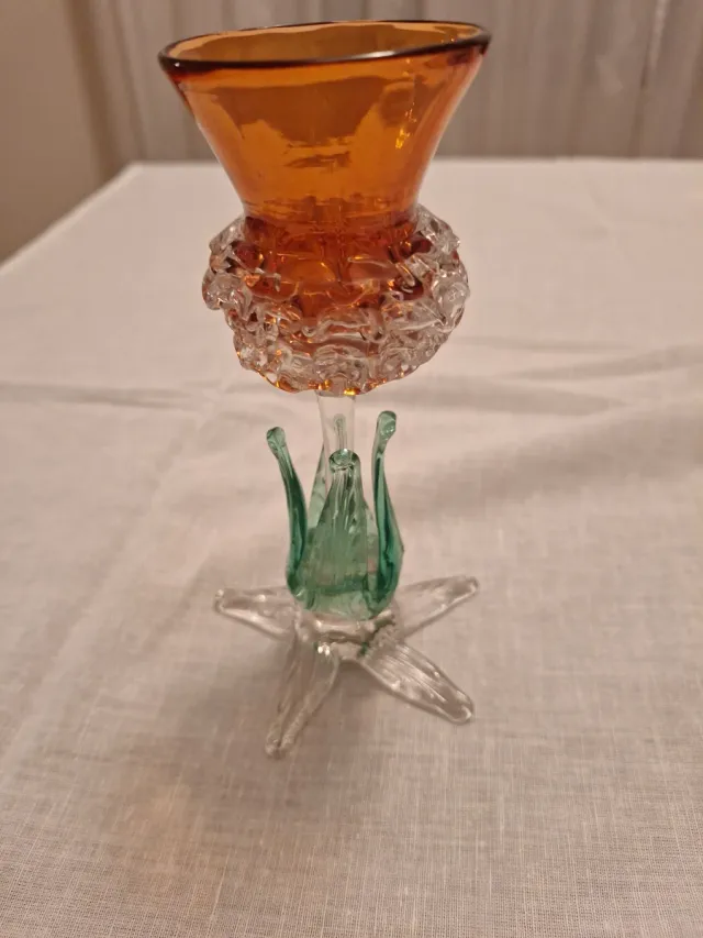 Dettagli del prodottoElegante vaso in vetro artistico, un pezzo unico che aggiunge un tocco di colore.