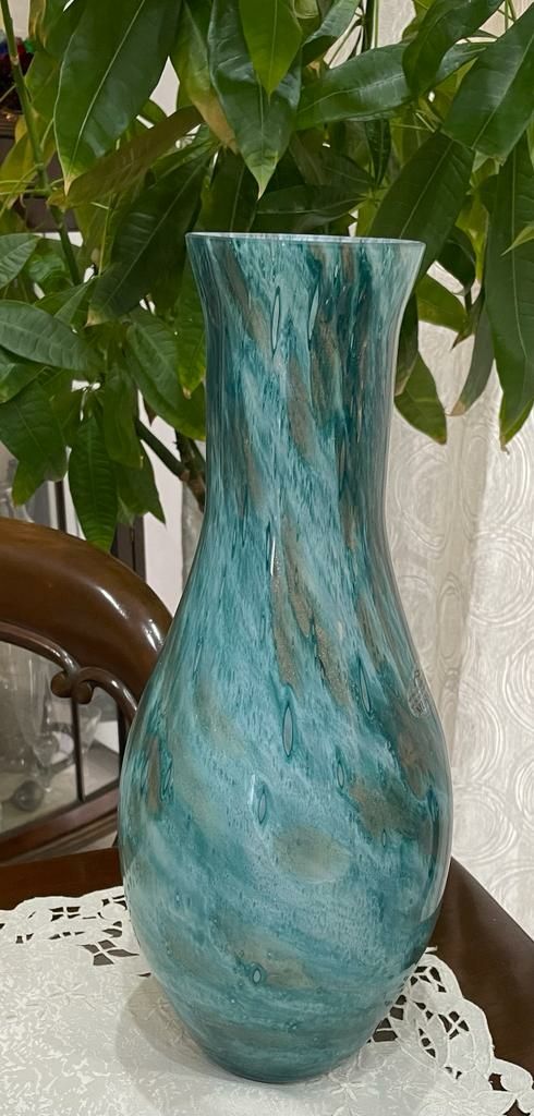 Stupendo vaso realizzato secondo la tecnica dei mastri vetrai di Murano Favoloso turchese con inserti oro e bianchi Nuovo
