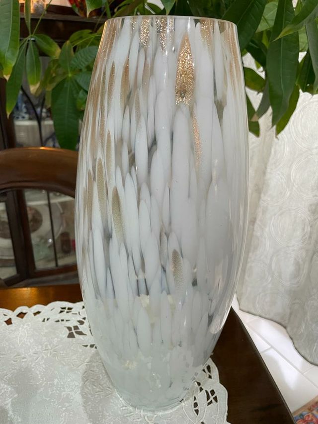 Bellissimo vaso in vetro soffiato secondo la tecnica dei mastri vetrai di Murano della bottega Goti Bellissima colorazione bianca ed oro Circa 40 cm di altezza Nuovo