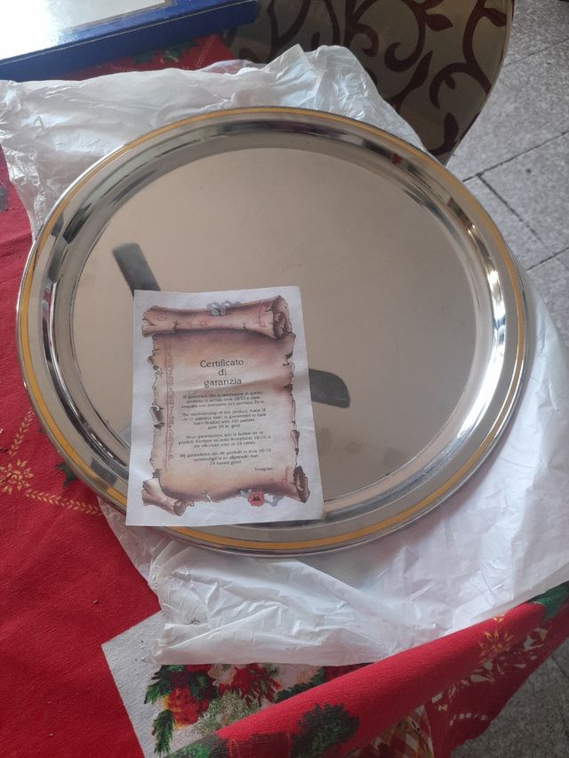 vassoio acciaio bordato oro