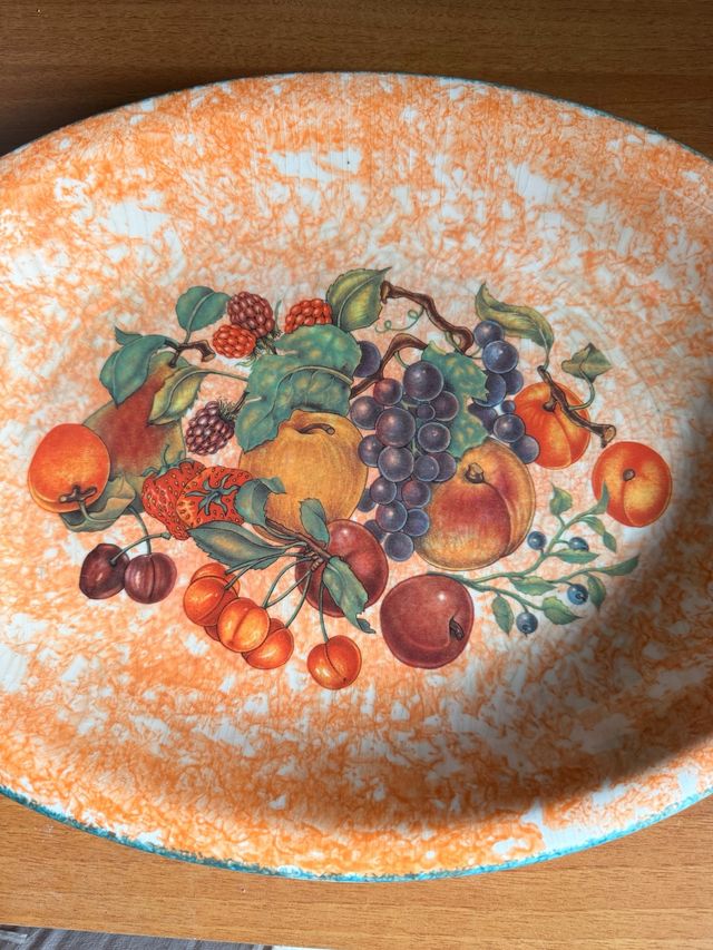 Bellissimo vassoio in ceramica con una vivace decorazione di frutta mista. Perfetto per servire o come elemento decorativo.