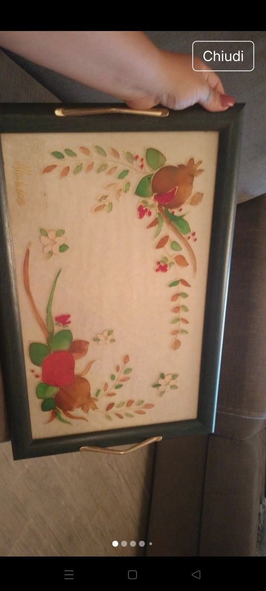Dettagli del prodottoBellissimo vassoio vintage, dipinto a mano con dettagli floreali e uccellini. Un pezzo unico per la tua casa!