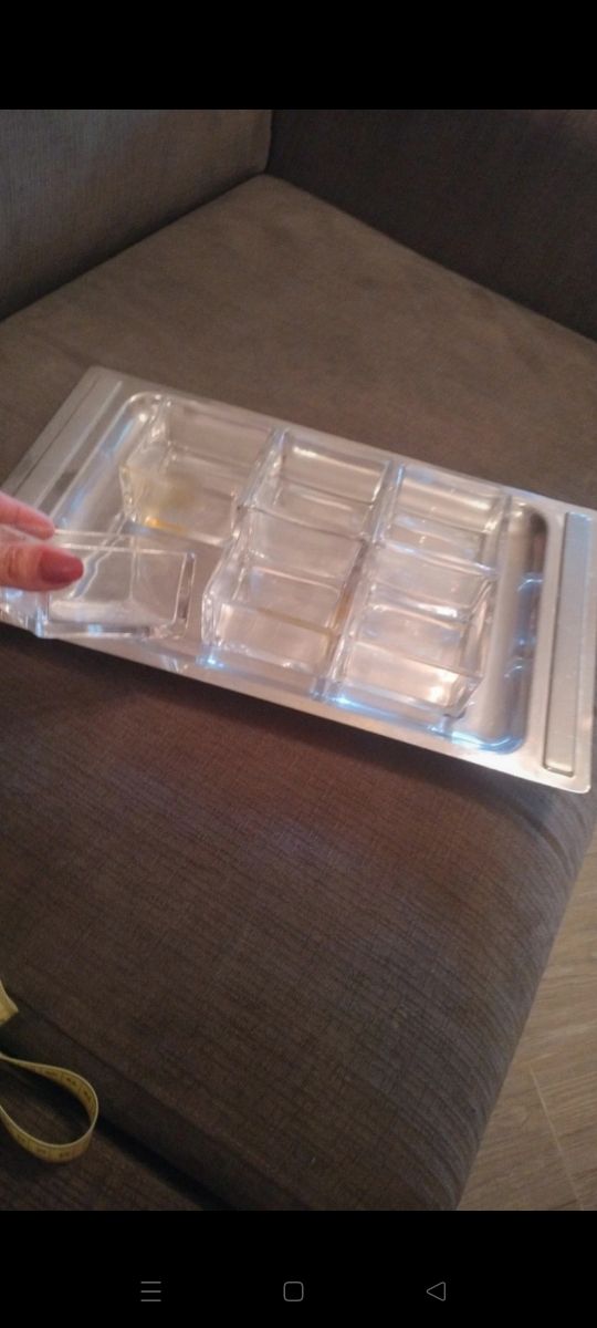 Dettagli del prodottoVassoio portaoggetti in plastica trasparente con scomparti in vetro. Perfetto per organizzare piccoli oggetti.