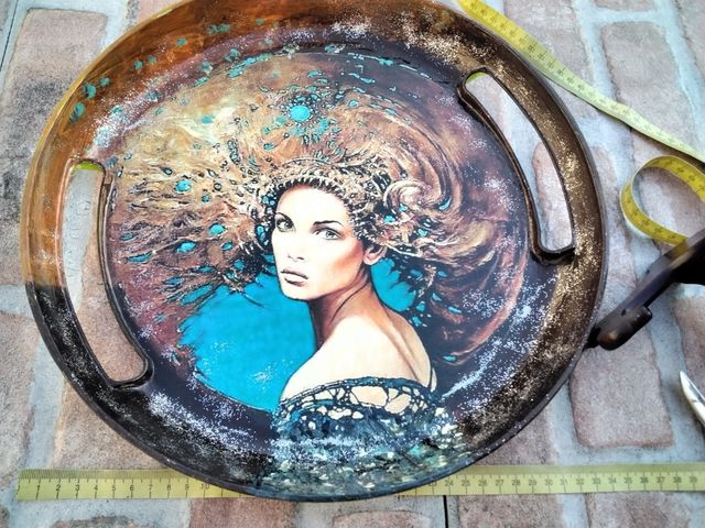 vassoio decuoupage e portavassoio ,immagini molto particolare diametro 36 cm