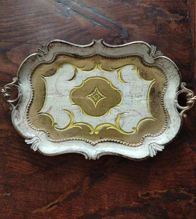 Vassoio fiorentino,legno,colori cachi e oro,misure:36x23 cm,in ottime condizioni.Bello! Prezzo fisso