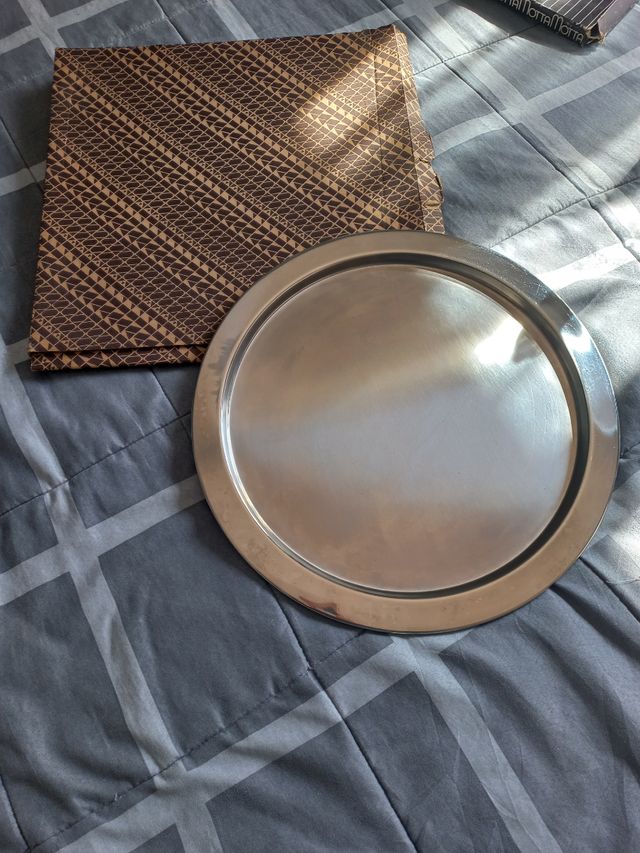 Dettagli del prodottoVendo vassoio acciaio inox 18/10 guantiera rotonda diametro 37,5 cm nella sua scatola originale.
