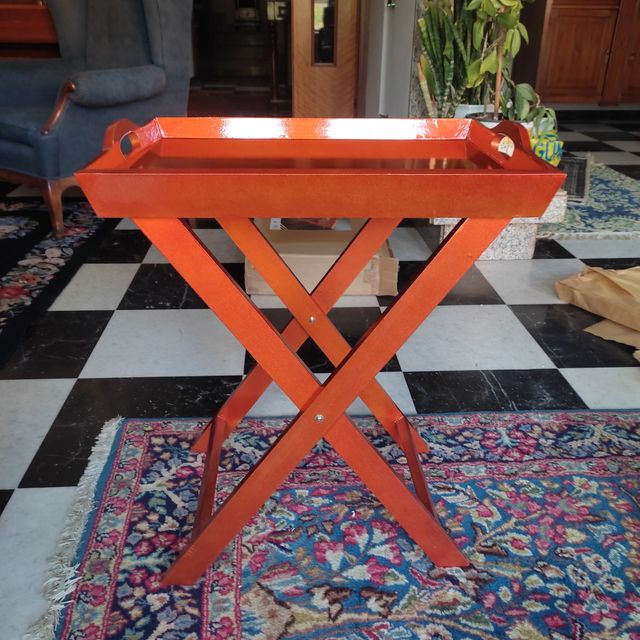 Dettagli del prodottobellissimo vassoio in legno con manici e cavalletto Brandani, di un magnifico colore rosso corallo.