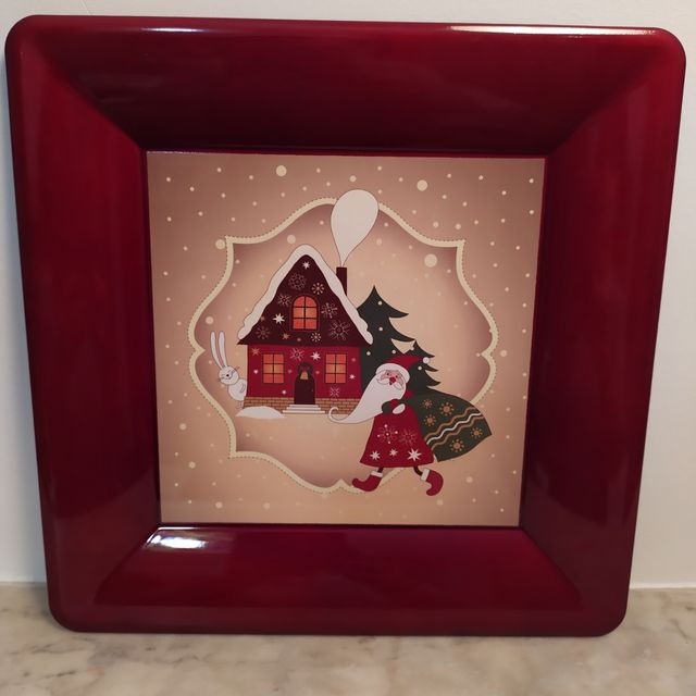 materiale plastico lucido bordo rosso effetto lacca forma quadrata lato cm 33