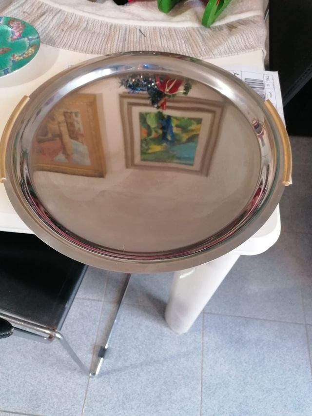 vassoio rotondo in acciaio inox e rifiniture dorate senza scatola 35x35