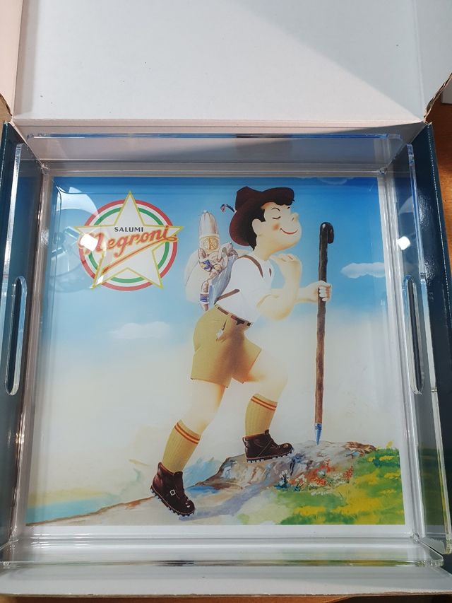 Vassoio della Negroni vintage, in edizione limitata, in occasione del 90* compleanno del prodotto. Il materiale è plexiglass.