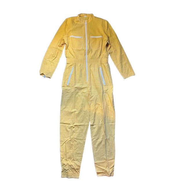 Tuta da lavoro colore giallo, taglia 11, realizzata in cotone 100%, confortevole e resistente. Dotata di zip frontale, tasche multiple e inserti funzionali, perfetta per attività lavorative o fai-da-te. In buone condizioni, usata ma ben tenuta.