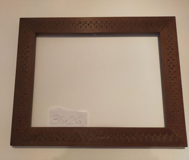 Dettagli del prodottovecchia cornice in noce con graziosa decorazione, già eseguito trattamento antitarlo Misure del prodotto