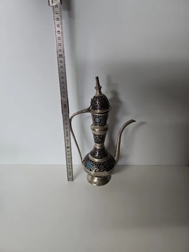 Dettagli del prodottoAntica teiera o caffettiera in stile orientale, realizzata in metallo e smaltata.