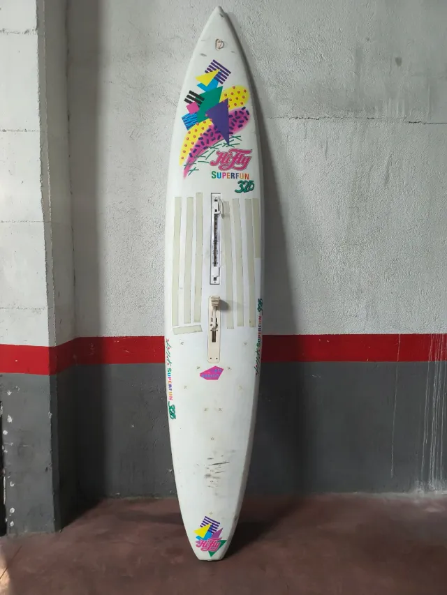 Dettagli del prodotto2 tavole, una per principianti e l'altra per livello avanzato, boma, albero in carbonio, 2 pinne, 1 pinna in carbonio, 3 vele, 1 di 6'5 metri con 3 cambers, un'altra di 4'5 e un'altra di 5'5. Solo la vela da 6'5 metri necessita di riparazione di due cerniere. La descrizione è stata tradotta automaticamente.