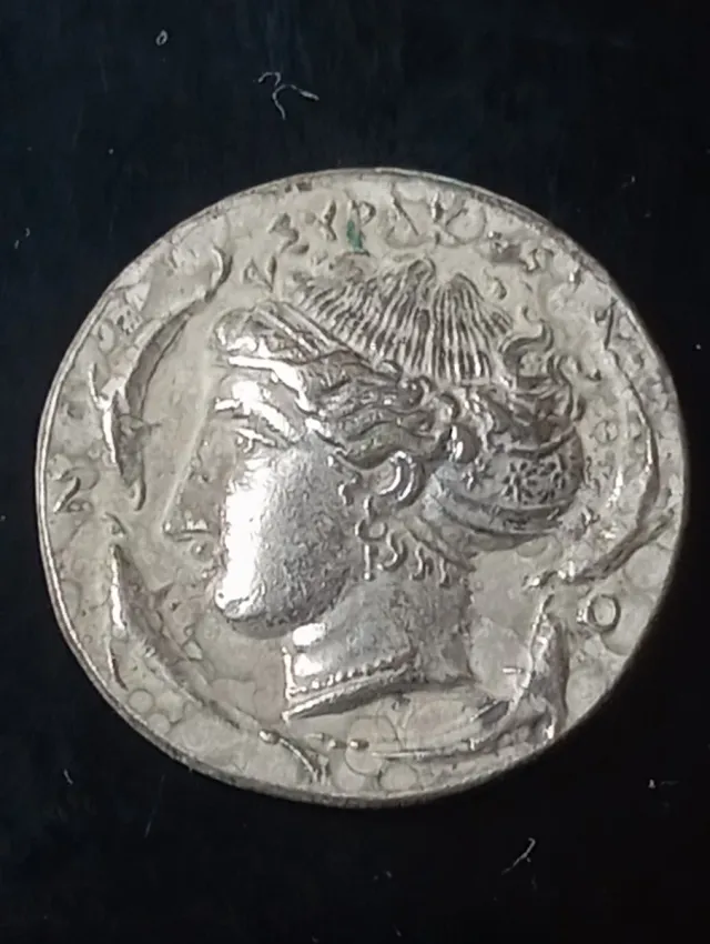 Dettagli del prodottoSto vendendo delle bellissime monete greche o romane? con un profilo femminile! Pezzo da collezione acquistato negli anni '80, ammetto bizum e la spedizione arriva il giorno successivo o wualapop, accetto offerte!