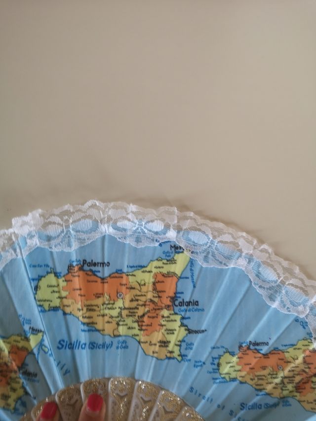 Ventaglio in stoffa e merletto con immagine della siciliana vedi foto allegati