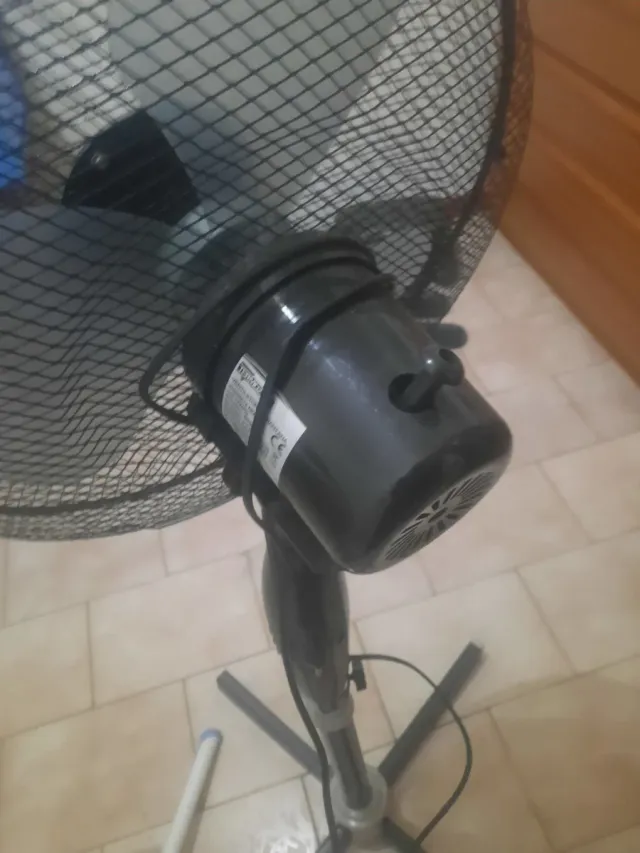 Ventilatore da terra di colore nero, con base a treppiede. - Motore potente. - Griglia di protezione. - Altezza regolabile.