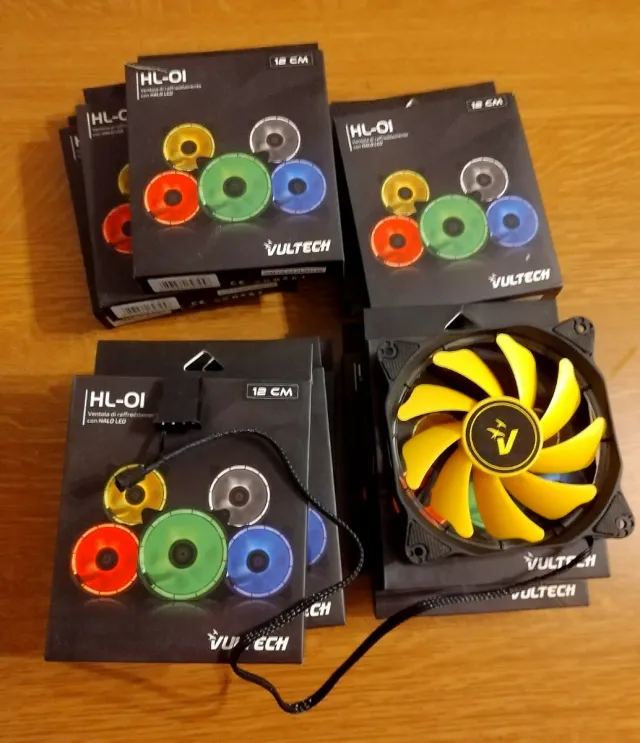 Può essere collegata direttamente sulla scheda madre utilizzando il connettore 3 pin oppure il connettore Molex 4 pin. Cablaggio ordinato grazie al cavo retato nero di 500 mm. Disponibili 16 pz, tutti nuovi mai utilizzati; il prezzo è riferito al singolo pz