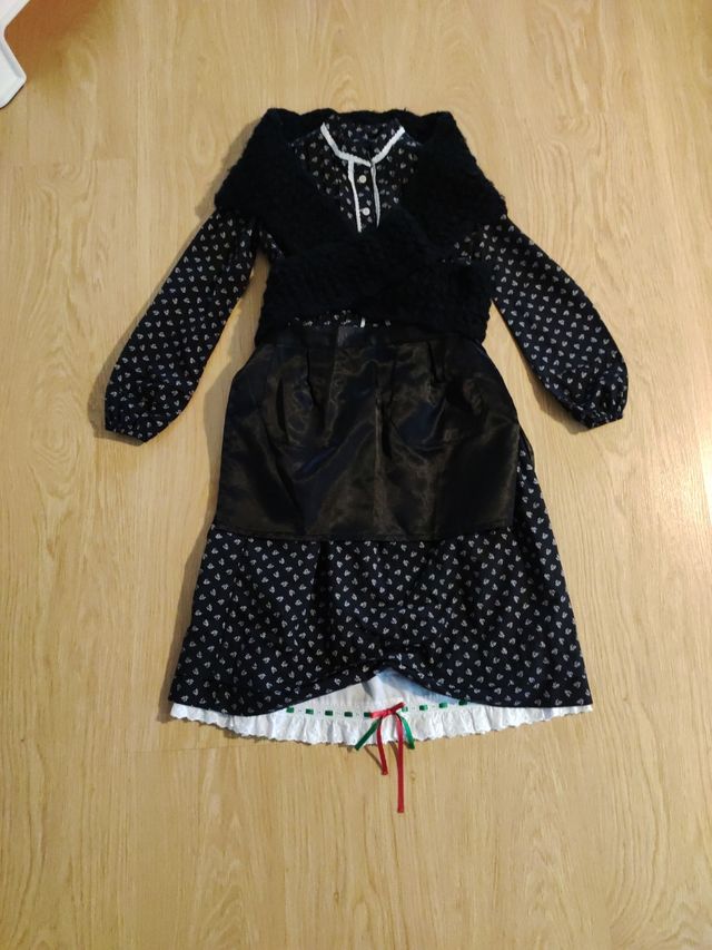 Dettagli del prodottoAbito Caserita fatto a mano, sfondo nero con fiori bianchi.