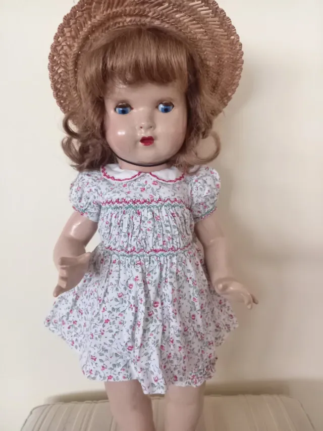 Dettagli del prodottoSet di vestito e mutandine di Mariquita Pérez, originale degli anni '40. Il vestito presenta un delicato motivo floreale e dettagli ricamati.