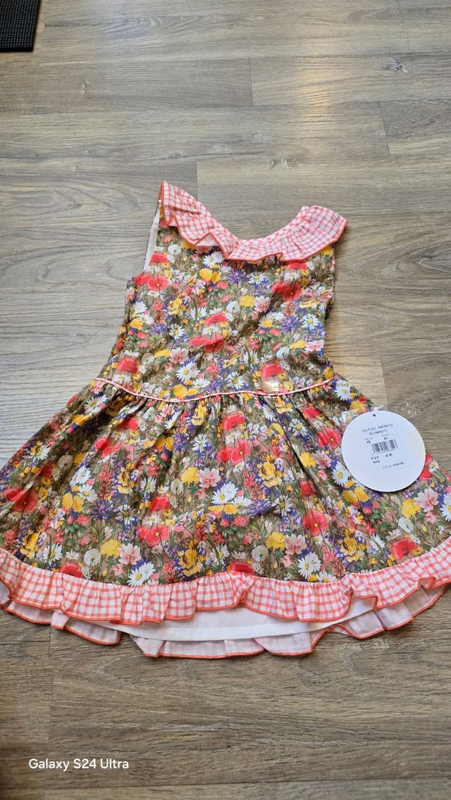 Dettagli del prodottoBellissimo vestito per bambina, ideale per occasioni speciali o per tutti i giorni. È di colore verde con stampa floreale e dettagli in vichy rosa, realizzato in batista della collezione primavera - estate di Miranda.