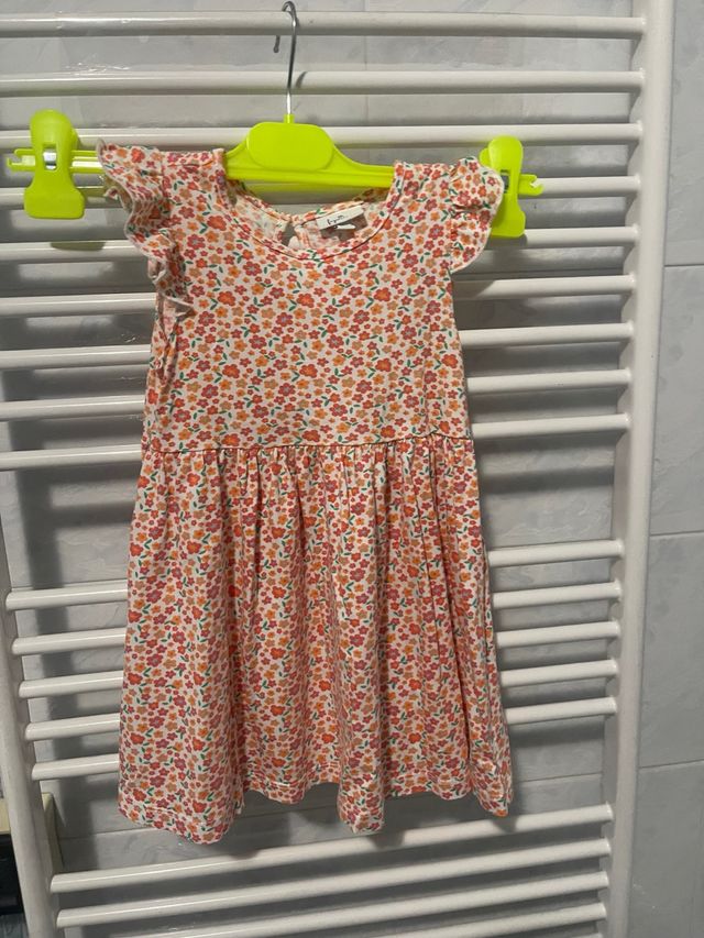 Delizioso vestitino a giro con riccetti a fiorellini - Taglia 18/24 mesi. - Maniche corte a volant. - Gonna ampia e svasata.