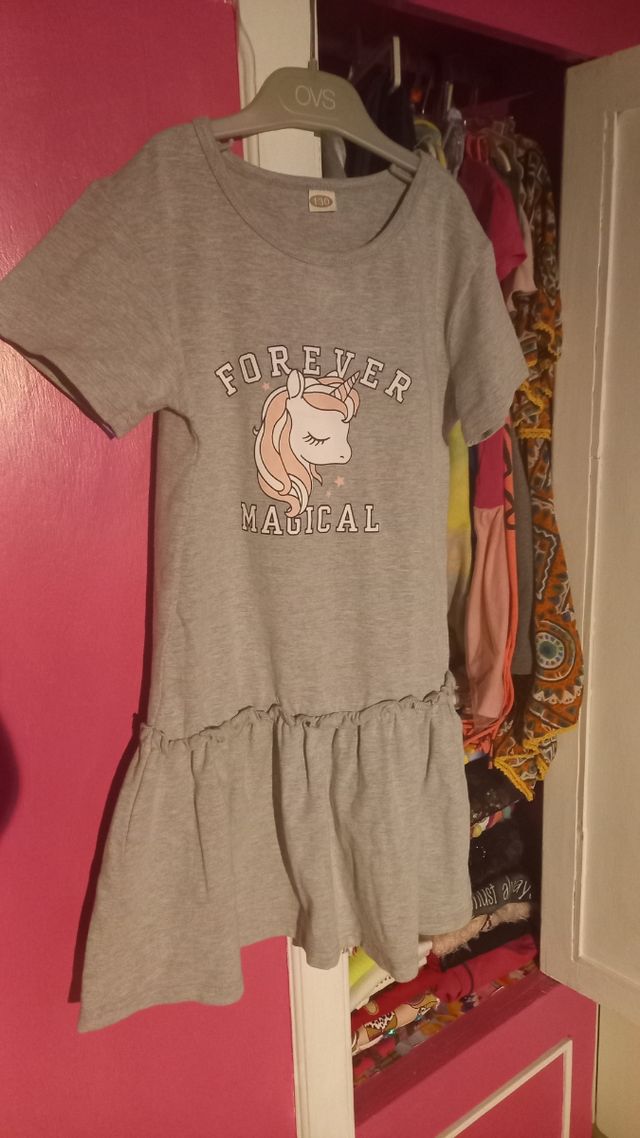 vestitino con unicorno a manica corta, anni 7-8 altezza cm 120, usato poco