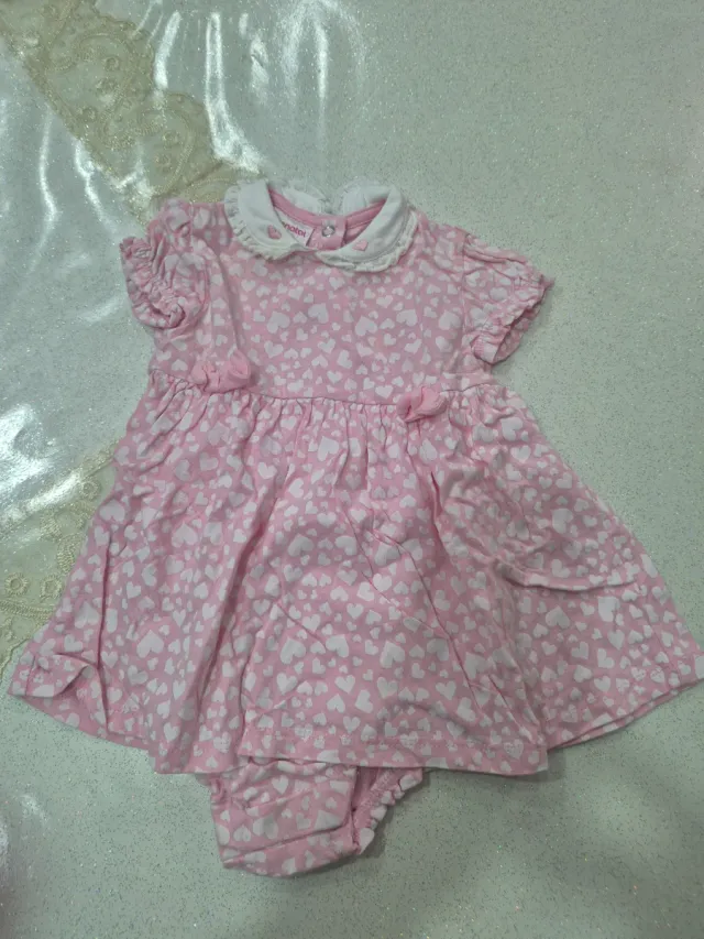 Dettagli del prodottoDelizioso vestitino per neonata con fantasia di cuori.