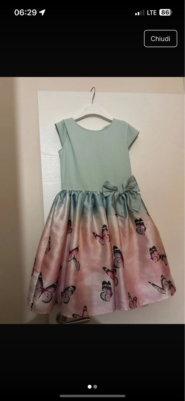 Dettagli del prodottoBellissimo vestito per bambina con stampa di farfalle. Perfetto per occasioni speciali.