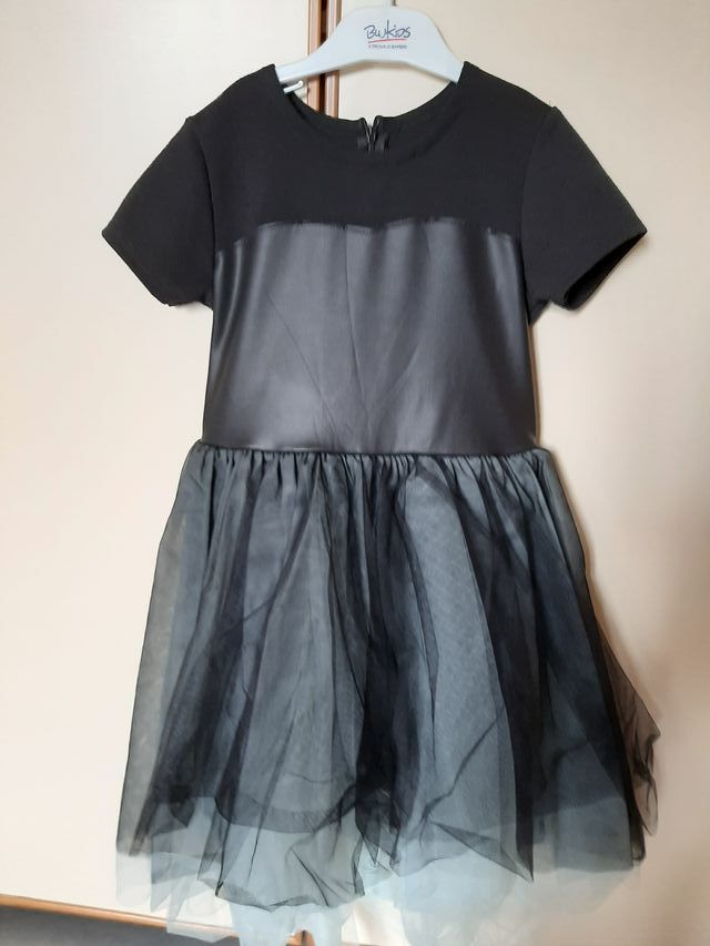 Vestito bambina nero, mezza manica, con gonna in tulle, taglia 5-6 anni. In buono stato.