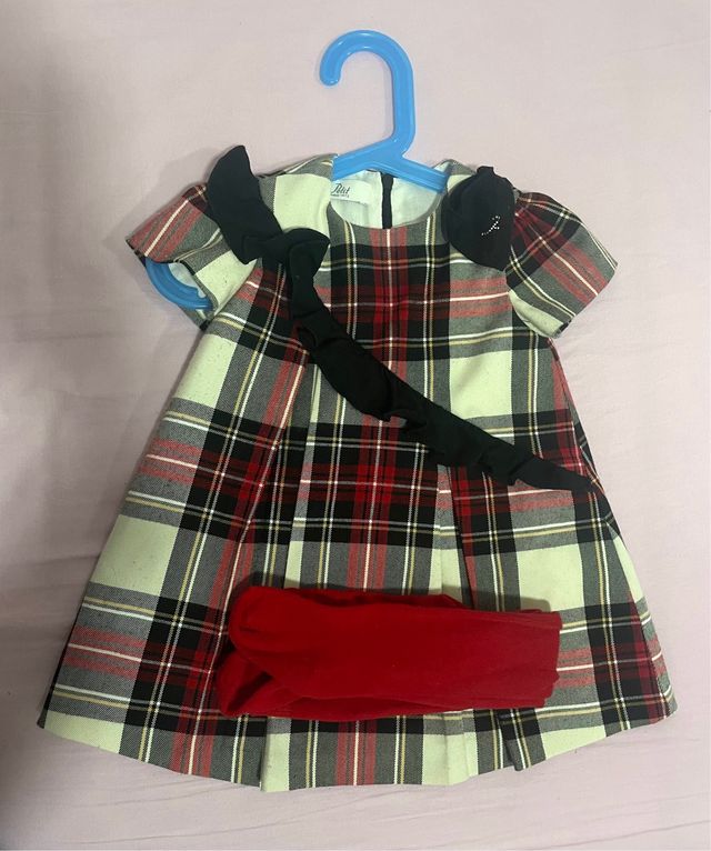Dettagli del prodottoBellissimo vestito per bambina con fantasia tartan, ideale per occasioni speciali.