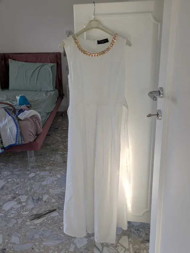 Vestito bianco con catena dorata al collo