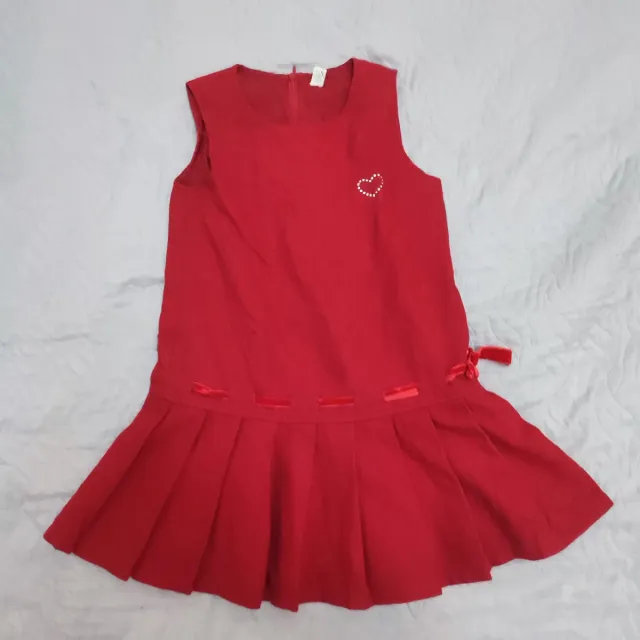 Vestito rosso per bambina, realizzato in morbido velluto. Presenta un grazioso cuore decorativo sul petto e dettagli con fiocchi in vita.