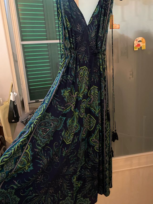 Vestito lungo fantasia blu e verde