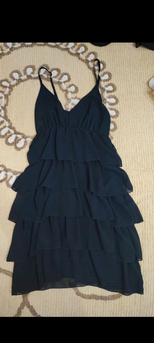 vestito nero,estivo,a balze,da sopra il ginocchio, molto elastico, in ottime condizioni