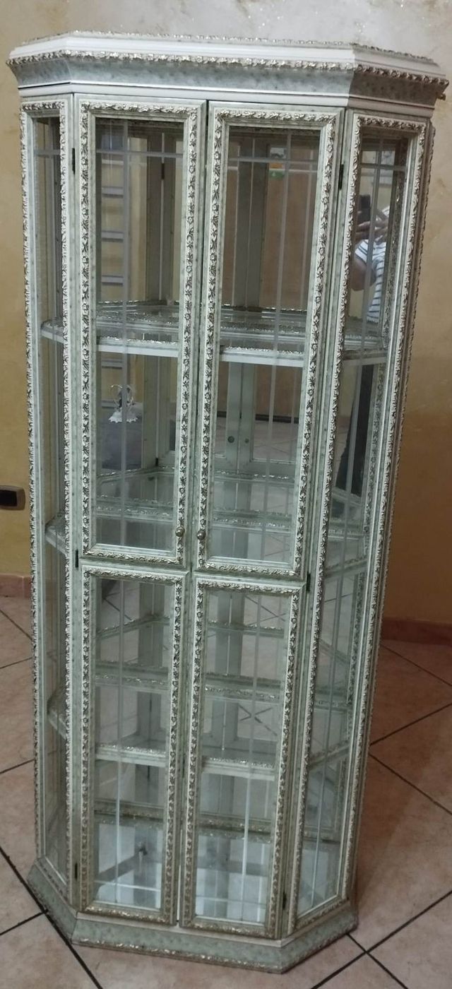Vetrinetta in legno bianco e vetro, decorata. Euro 130.00