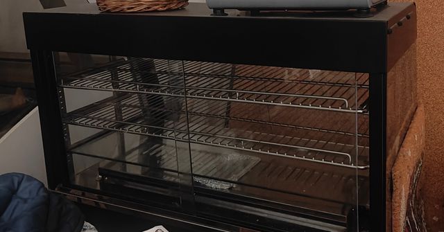 Vetrinetta da banco con vaschette cucina o gelato.