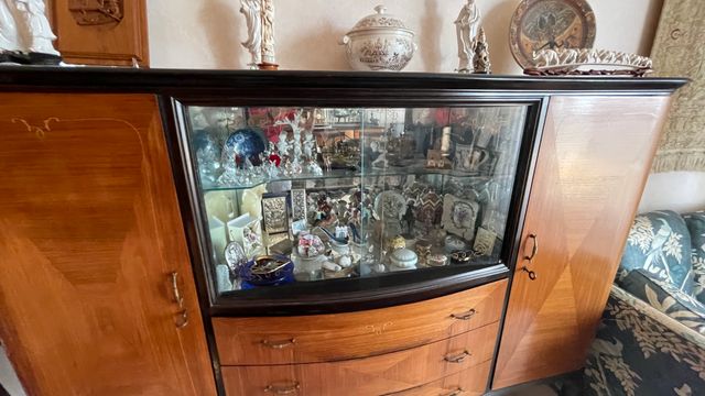 Dettagli del prodottoElegante vetrinetta e credenza con specchio, risalente agli anni '50. Un pezzo d'arredo che aggiunge un tocco vintage alla tua casa.