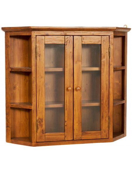 Dettagli del prodottoVetrinetta scantonata da appendere L86xPR21xH75 cm in legno massello di tiglio. È dotata di tre capienti ripiani protetti da due ante a vetro con pomelli in legno e due funzionali vani a giorno laterali. Resistente e solida, curata nei mini dettagli grazie alla lavorazione artigianale Made in Italy, vanta un design originale che la rende perfetto per qualsiasi ambiente e stile.