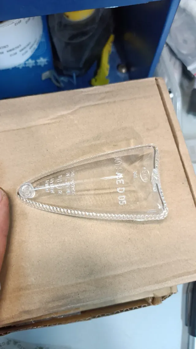 Vetrino trasparente per freccia originale Yamaha. - Materiale: plastica trasparente. - Design: forma affusolata con bordo zigrinato. - Omologazione: 301 SAE D 05.