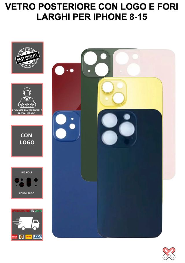 VETRO DI RICAMBIO PER IPHONE 8-15 VARI COLORI
