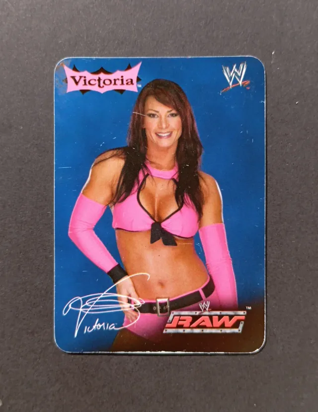 Carta della WWE del 2004, raffigurante Victoria, wrestler di RAW. Imballaggio accurato.